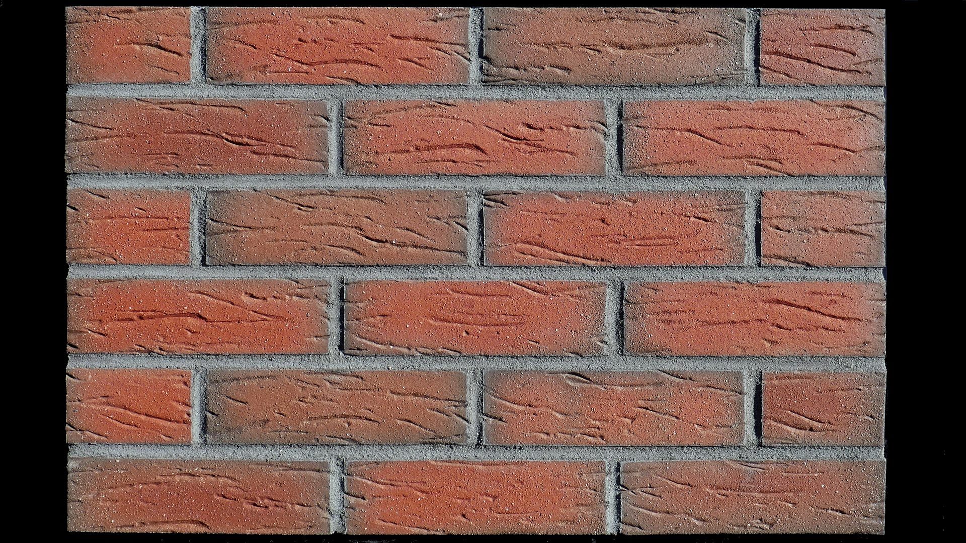 Klinkervörös alapszínűközépbarna és sötétbarna égetési foltokkal tarkított, rusztikus felületű homlokzatburkoló klinkerlap.