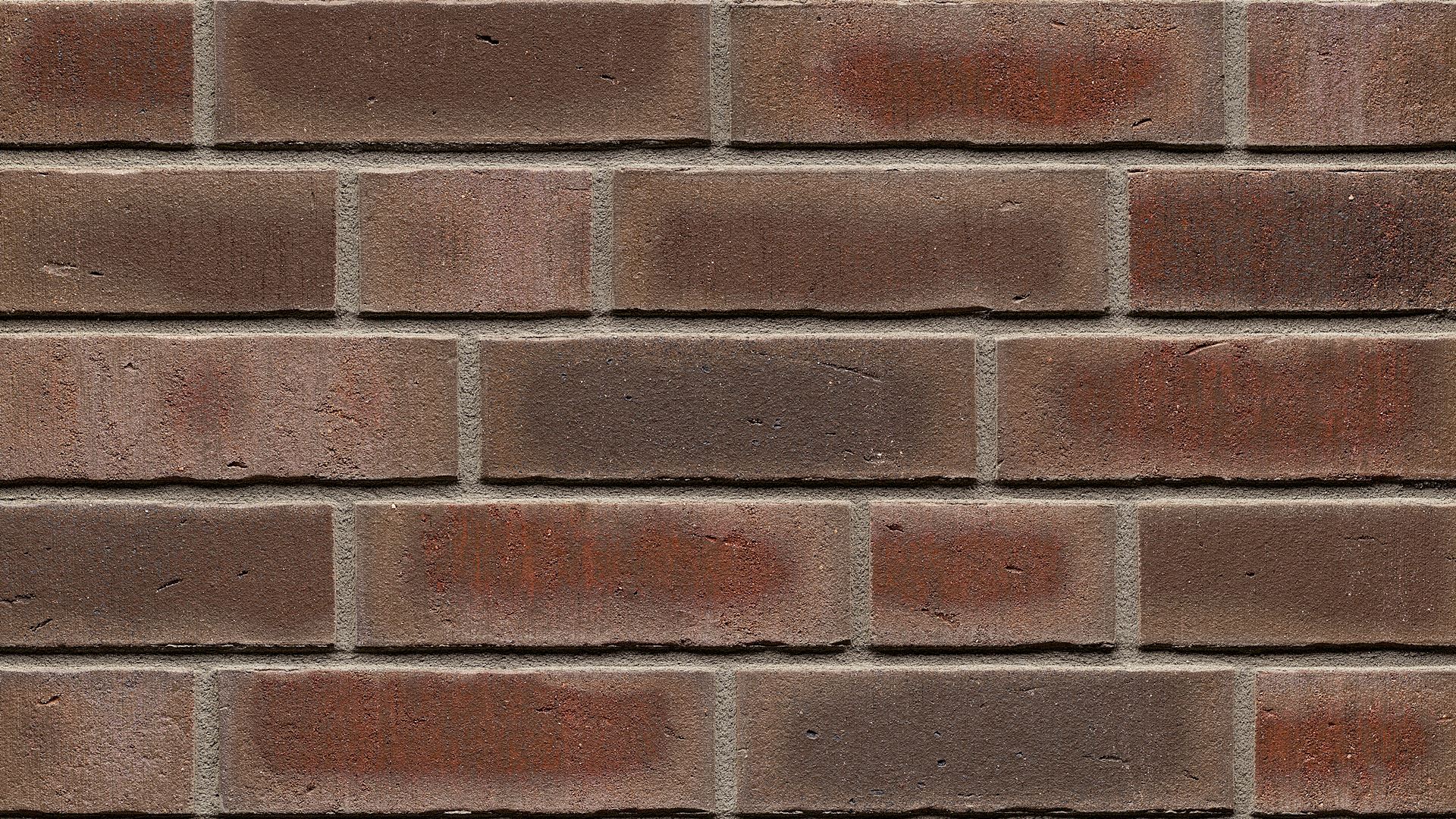 Középbarna-sötétbarna égetett átmenetes színű, világosbarna és fekete égetési foltokkal díszített, strukturált, kapart felületű klinker homlokzati burkolólap.