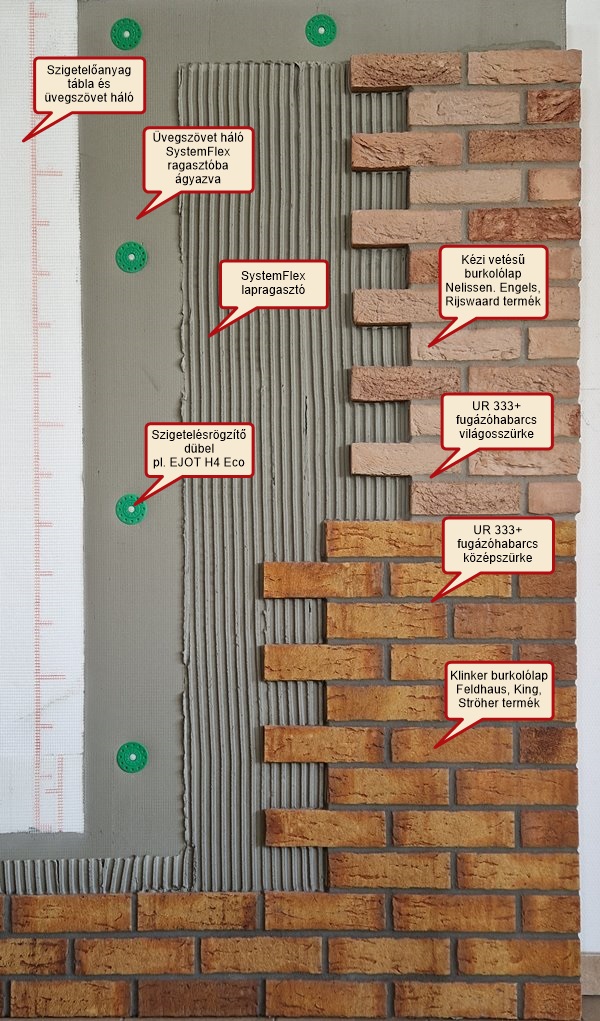 - Klinker vagy kézi vetésű homlokzati burkolólap