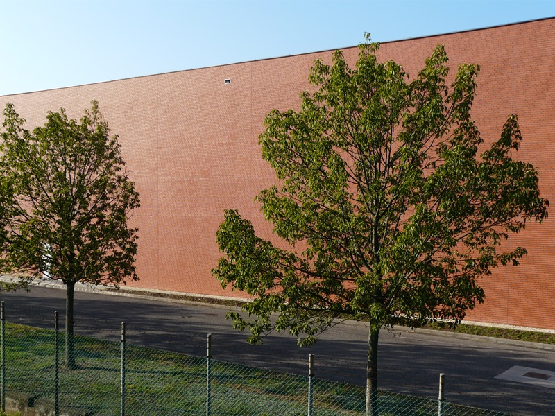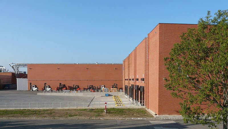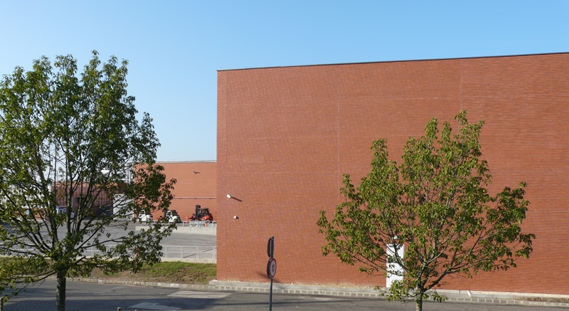 Egy ipari épület több ütemben való bővítésénél kritérium volt az, hogy az új épületrészek téglaburkolata egyezzen meg a meglévővel. A Feldhaus cég a 480-as kódú burkolólapot speciális égetéssel enyhén tarkára gyártotta le, ezzel sikerült egészen megközelíteni a 25 éves meglévő burkolat színvilágát. A homlokzati lapburkolat vasbeton panel aljzatra készült, speciális egész-egész-fél tégla sorrendben, negyedes kötéssel, azaz a meglévő épület téglakötésével megegyező módon. Minden épületélen és nyílásnál sarokelemeket építettünk be. A teljes burkolt felület összesen 5300 m2.