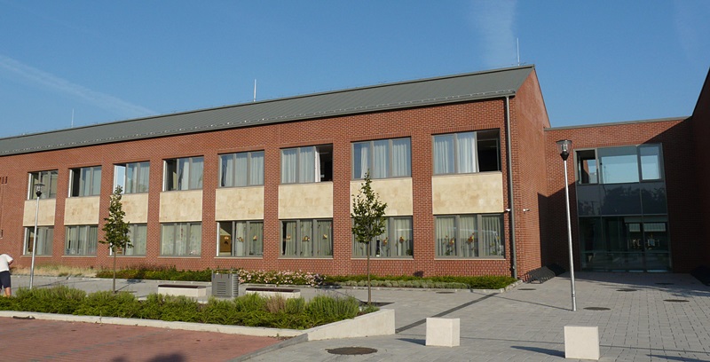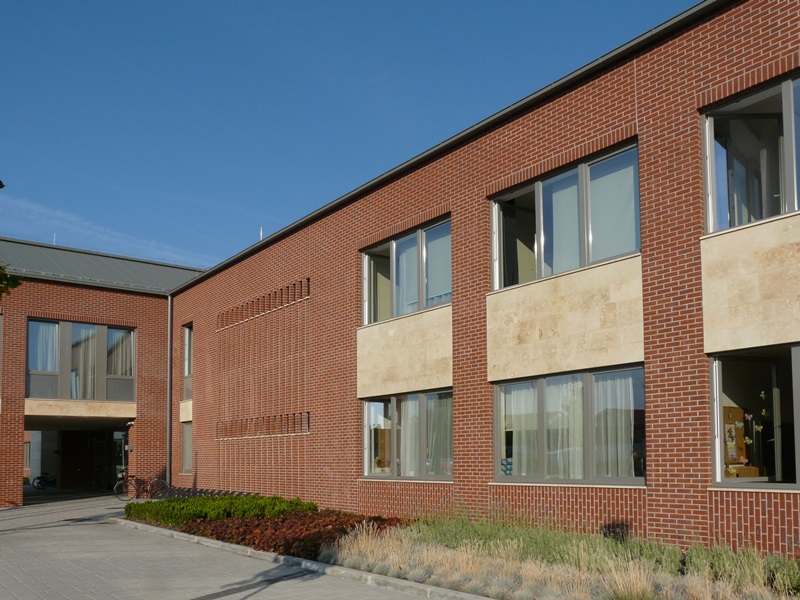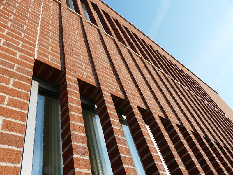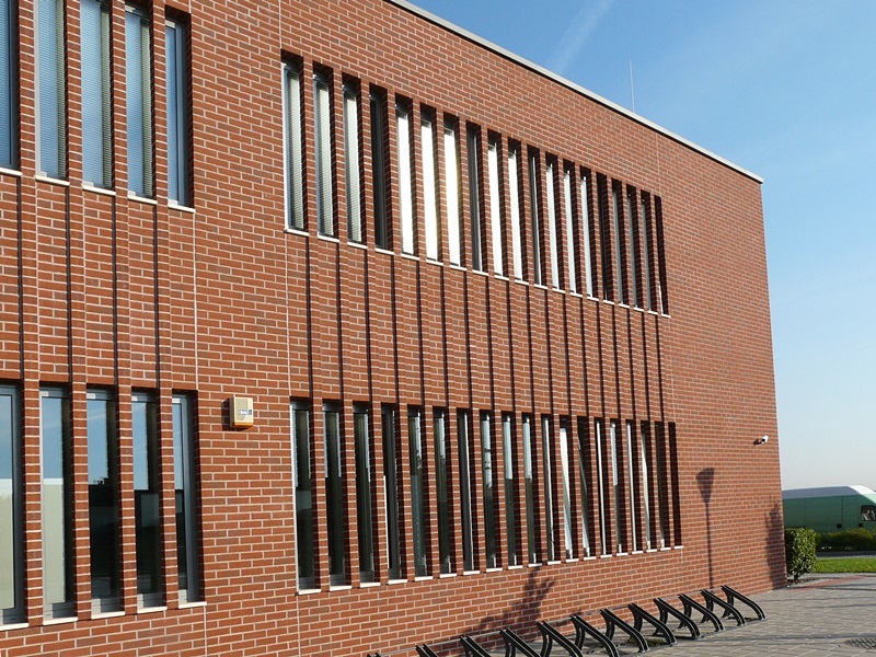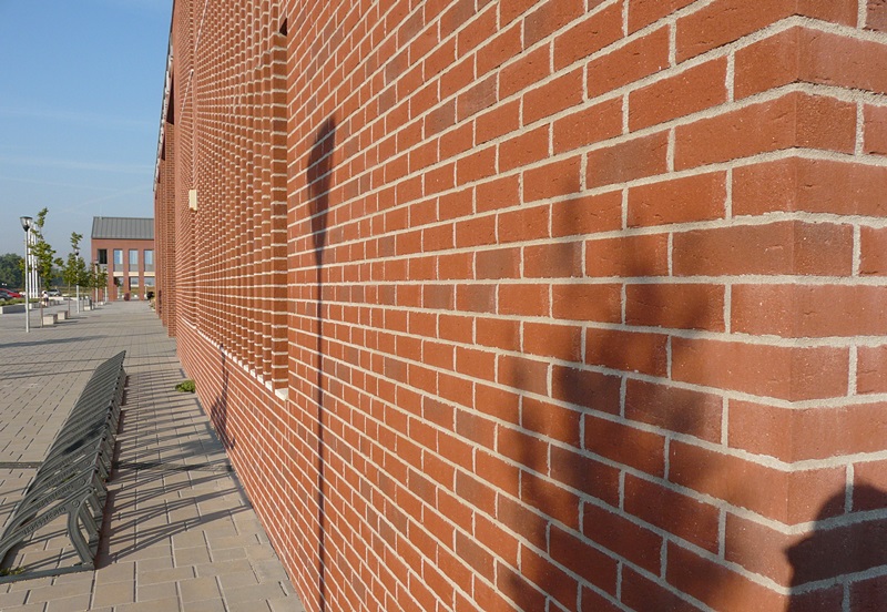 A teljes komplexum két ütemben készült el. Az összes burkolati felület 5400 m2, melynek többsége lapburkolat. Falazott téglaburkolat a főbejárat körüli pilléreken, illetve az ablakok előtti árnyékoló bordákon található. A burkolólapok és a téglák megjelenése 100%-ban megegyezik, a kétféle felület - a sarokelemeknek köszönhetően - megkülönböztethetetlen. A lapburkolat alkalmazásával kivitelezési időt és kivitelezési költséget sikerült megtakarítani.