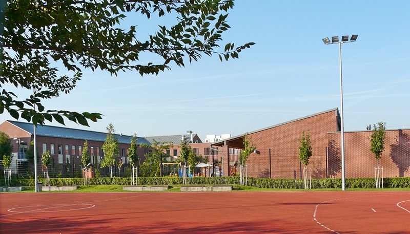 Óvodát, iskolát és sportcsarnokot magába foglaló épületegyüttes készült Szigetszentmiklóson. A homlokzati burkolat egyedi gyártású Feldhaus Sintra vörös-kékes tarka színű, rusztikus klinkerlapokból és téglákból áll, mindenütt sarokelemes élképzéssel. A kivitelezést cégünk végezte, az iskola homlokzatán a hőszigetelő rendszer is a mi munkánk.